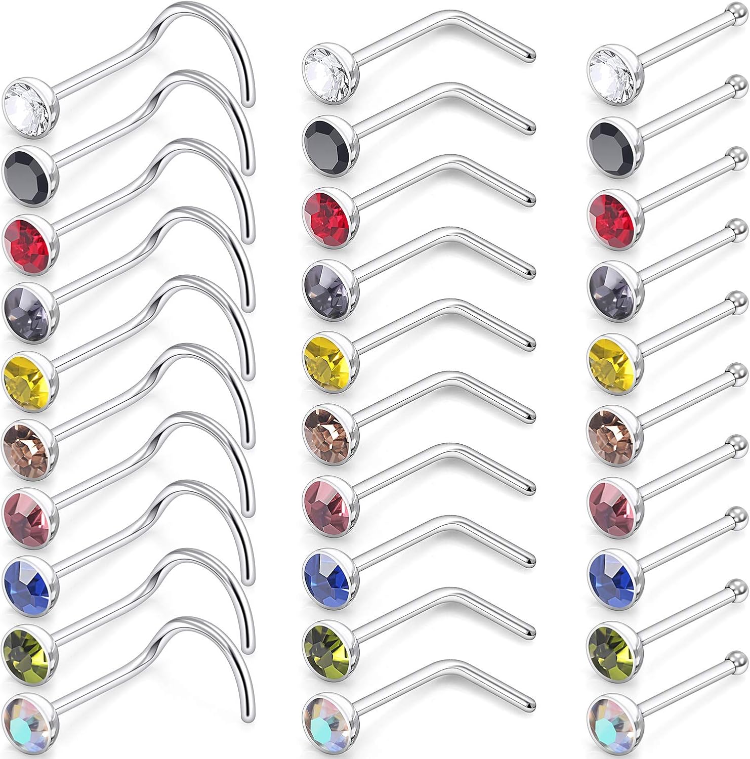 Amazon Com Sllaiss 925 Sterling Silver L Shaped Nose Rings Set