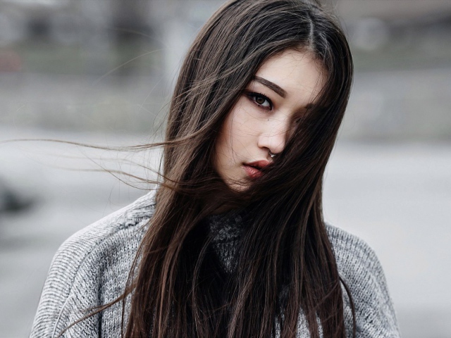 Brunette Asian Girl With Piercing In The Nose Wallpapers And