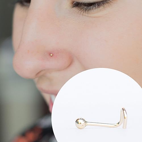 Amazon Com Curve Bar Tiny Ball Nose Ring Solid 14k Gold Twist