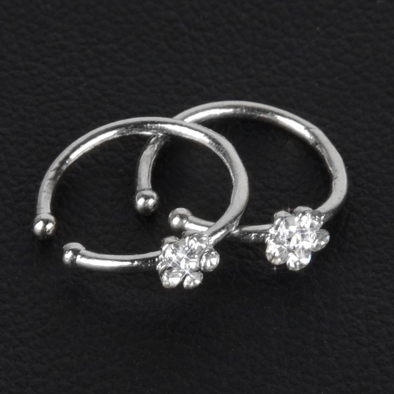 2020 Small Thin Flower Clear Crystal Nose Ring Stud Hoop Sparkly