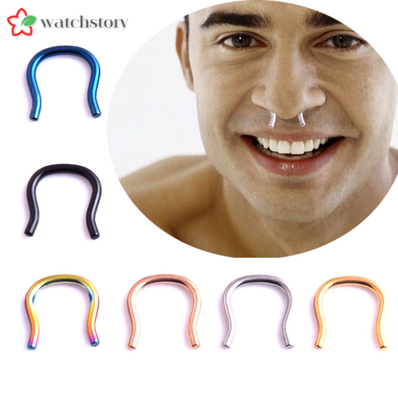Readystock 1pair Men Nose Ring Stainless Steel Fake Septum