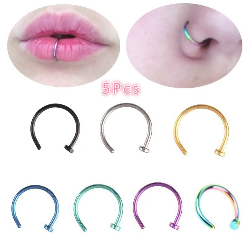 5pcs Fake Titanium Nose Ring Lip Piercing Nose Hoop Open Body