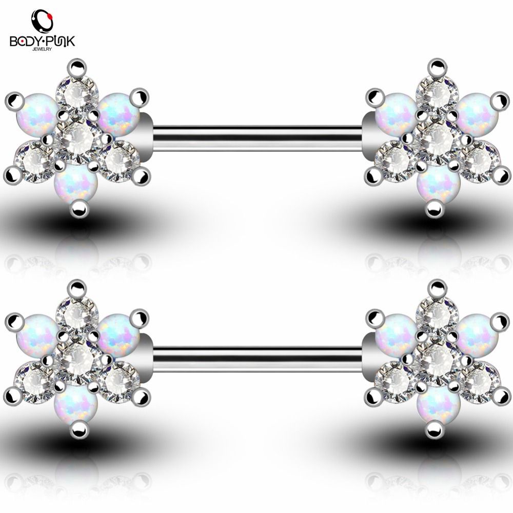 2020 Wholesale Body Piercing Jewelry Rose Gold Silver Bar With White Blue Synthetic Opal Clear Cz Flower Shape Nipple Rings For Women From Meinuo002 29 86 Dhgate Com